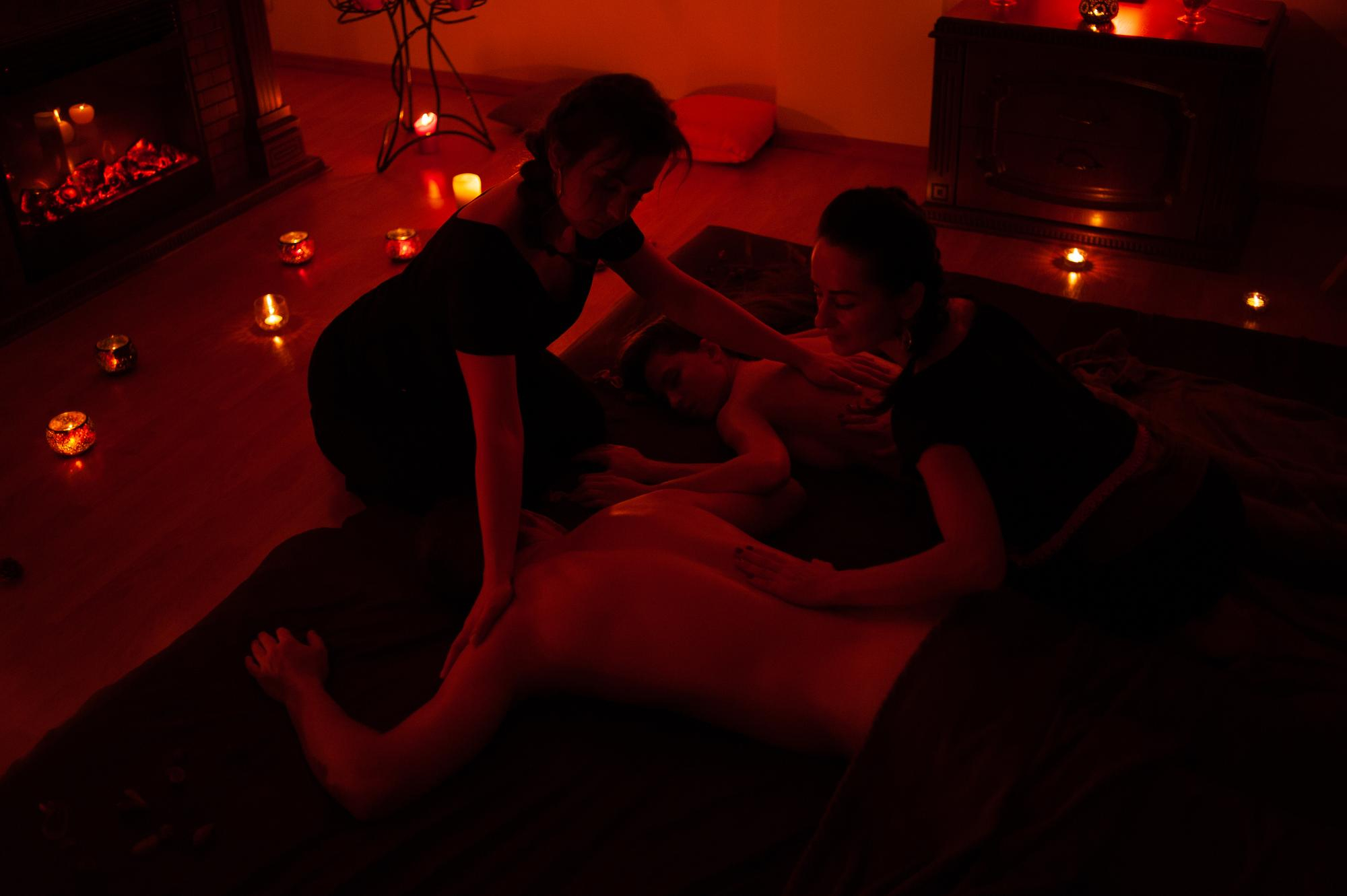 • The masseuse typically uses their entire body—including the torso, thighs, and arms—to massage the client.