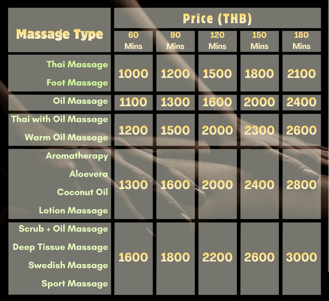 - Massage for 60mins – ฿1000